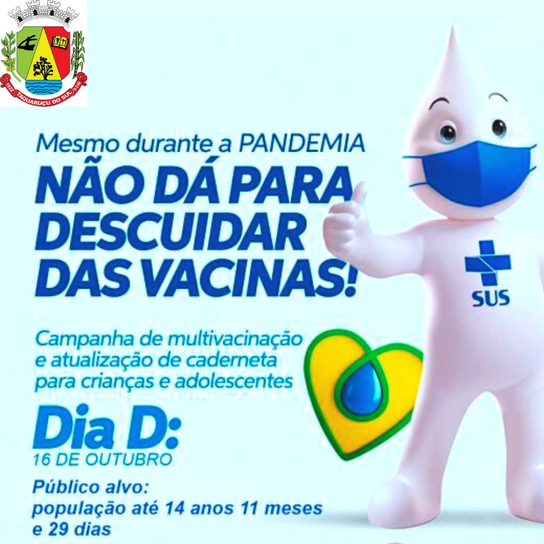 Manter a vacinação de crianças e adolescentes em dia é um compromisso de todos, e os pais e responsáveis têm papel fundamental nessa missão.Pensando nisso, teve início no dia 1º de outubro a Campanha Nacional de Multivacinação de 2021, a qual se estenderá até o dia 29 de outubro.