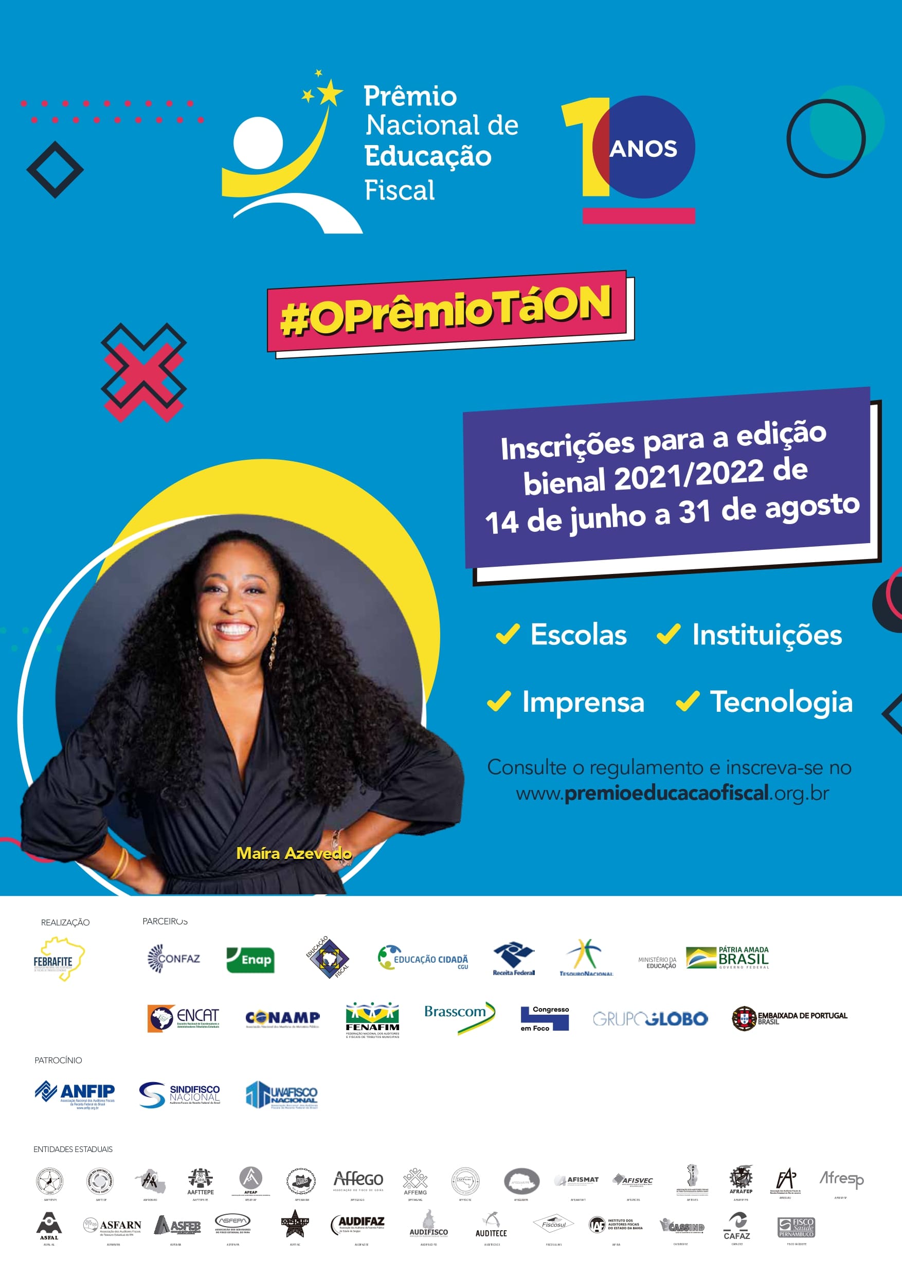 O Prêmio Nacional de Educação Fiscal, edição 2021-2022 é uma ação da Febrafite em parceria com a Secretaria da Receita Federal do Brasil (RFB), Secretaria do Tesouro Nacional (STN), Controladoria Geral da União (CGU), do Grupo de Trabalho Educação Fiscal (GT66- Educação Fiscal), vinculado ao Conselho Nacional de Política Fazendária (Confaz), com apoio do Ministério da Educação e das principais entidades nacionais dos Fiscos do Brasil.