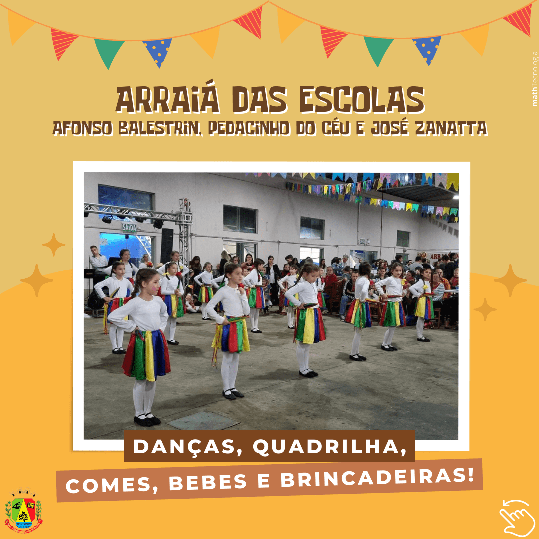 Na última sexta-feira, dia 24, dia de São João Batista - O Santo Festeiro - as Escolas Municipais Afonso Balestrin e Pedacinho do Céu, juntamente com a Escola Estadual José Zanatta realizaram a tradicional Festa Junina das Escolas. Centenas de pessoas se fizeram presentes no Salão Paroquial, para os festejos juninos e o Arraiá foi muito animado.Houve apresentações dos grupos de dança do projeto Vem Dançar de Taquaruçu do Sul e dos grupos de Palmitinho e Vista Alegre, coordenados pelo Professor Danilo de Gregori, além da tradicional Quadrilha que teve como noiva a Professora Sibele e como noivo o professor Danilo. Após as apresentações dos alunos, que animaram os presentes, as crianças puderam se divertir com as brincadeiras típicas como a pescaria, o jogo das argolas e a boca do palhaço e se deliciar com as comidas e bebidas típicas da data.