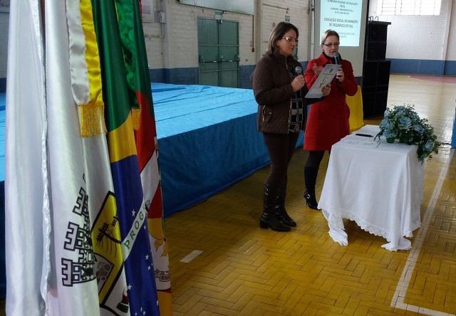 Na ocasião, as representantes do Grupo de Educação Fiscal do Município, Eliane Bridi e Karine Zanatta fizeram apresentação sobre as ações que já foram desenvolvidas pelo grupo, a fim de que o Programa de Educação Fiscal desse certo, e para que houvesse incremento mensal nas receitas do Município através do Programa de Integração Tributária.