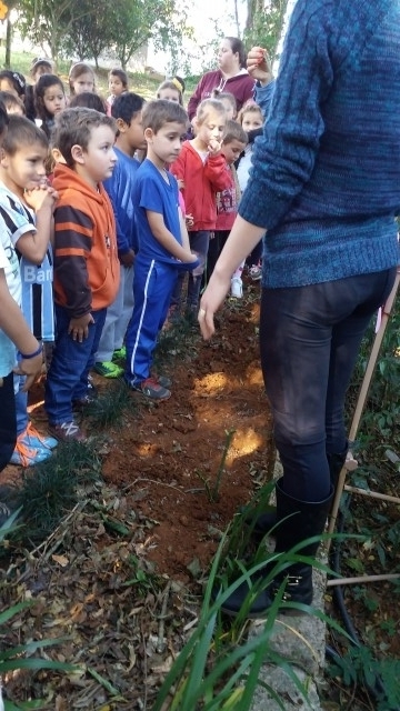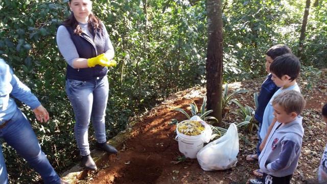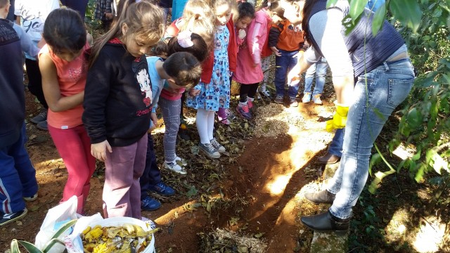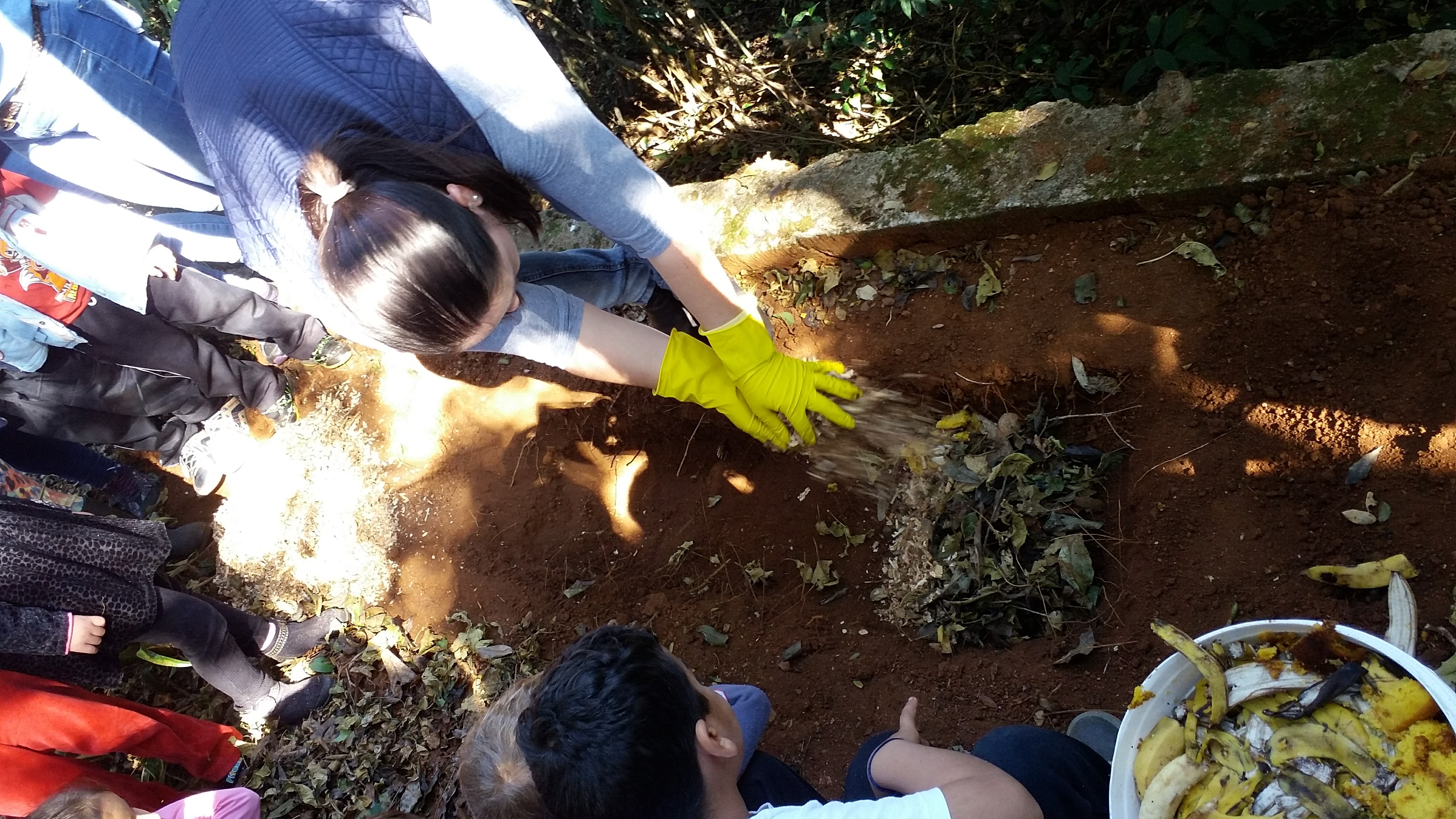 Além disto, foi mostrado aos alunos como que o lixo orgânico, através da compostagem, pode virar adubo para o plantio das plantas,