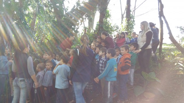 Na semana que passou, professores e alunos da Escola de Educação Infantil Pedacinho do Céu, juntamente com turmas das escolas Municipal Afonso Balestrin e Estadual José Zanatta, fizeram mais uma ação do projeto: trilha ecológica na mata que fica em frente a escola.