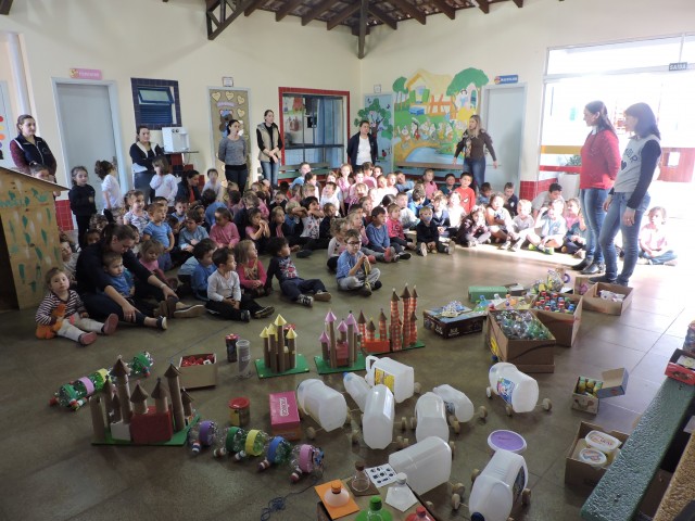 A culminância do projeto aconteceu com a entrega de brinquedos confeccionados pelas responsáveis do setor de meio ambiente, Débora Zamban e Loiva Somavilla Piovesan, a partir do lixo reciclado trazido pelos alunos como parte da ação do projeto.