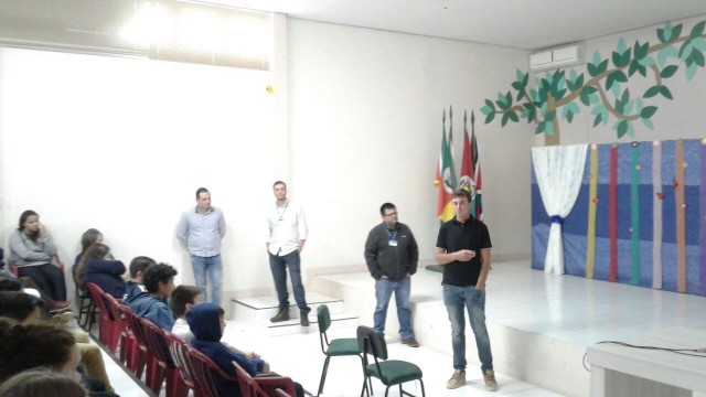 Além da apresentação pelos professores, o Jovem Agricultor do Município, Luciano Cansian, apresentou sua propriedade e a atividade principal que desenvolve: Bovinocultura Leiteira.
