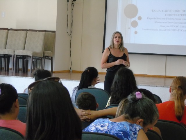 Na oportunidade esteve presente Talia Castilhos de Oliveira Graduada em Fisioterapia pela FEEVALE, Pós-Graduada em Fisioterapia Cárdio-Respiratória pela GAMA FILHO. Mestre em Envelhecimento Humano pela UPF (Universidade de Passo Fundo). Atualmente é Instrutora da oficina de Pilates no CREATI (Centro de Referência e Atenção ao idoso), no campus UPF de Carazinho, Formação em Coaching pelo IBC e Docente do SENAC de Carazinho, onde abordou brilhantemente aos participantes sobre “Felicidades e Emoções Positivas”.