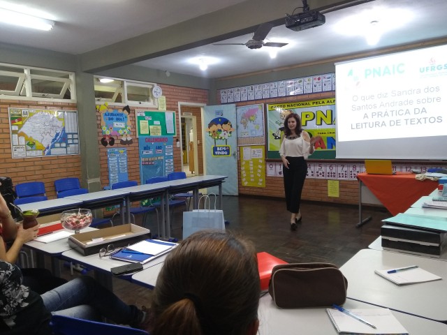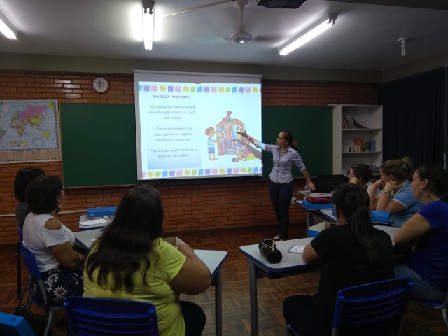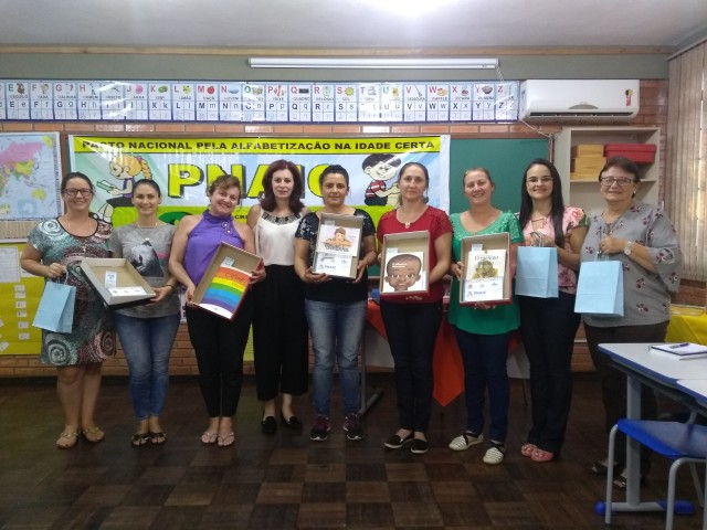 Participam dessas formações as professoras e coordenadora pedagógica do 1º ao 3º ano da Escola Municipal de Ensino Fundamental Afonso Balestrin e da Escola Estadual de Educação Básico José Zanatta, assim como as professoras e a coordenadora pedagógica da educação infantil da Escola Municipal Educação Infantil Pedacinho do Céu da pré-escola.