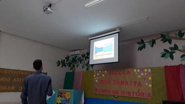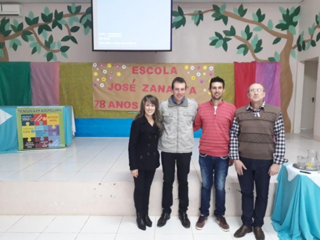 Em seguida, procedeu-se com a apresentação do Projeto Profissional e de Vida dos acadêmicos residentes do Município: Tais Mara Albarello, com o projeto sobre Análise de viabilidade econômica da atividade de bovinocultura de leite da família Albarello; Leonardo José Botezini, tratando sobre Produção de ovos para comercialização e Jaisson Gambin, com seu projeto sobre o Desenvolvimento da propriedade rural e bovinocultura de leite.