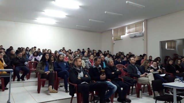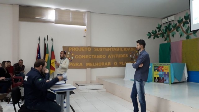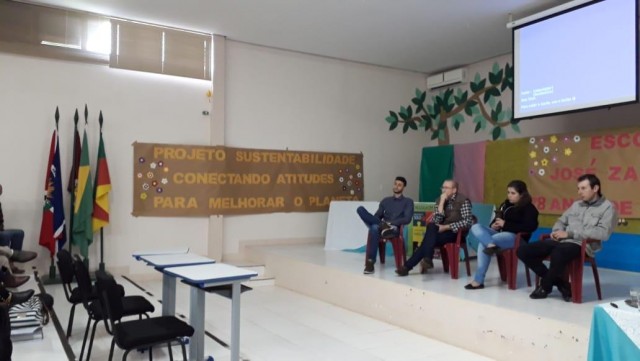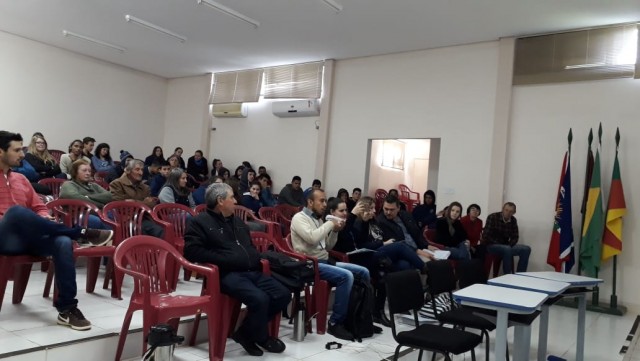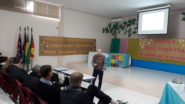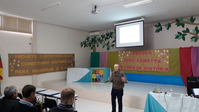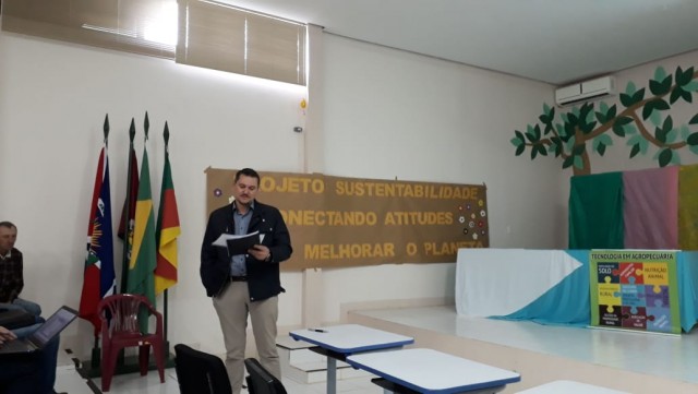 Integrando a programação do evento, o professor e coordenador do curso, Luiz Pedro Hillesheim, iniciou o evento ministrando uma palestra com o tema “Projetos de vida: sustentabilidade econômica e social no meio rural”.