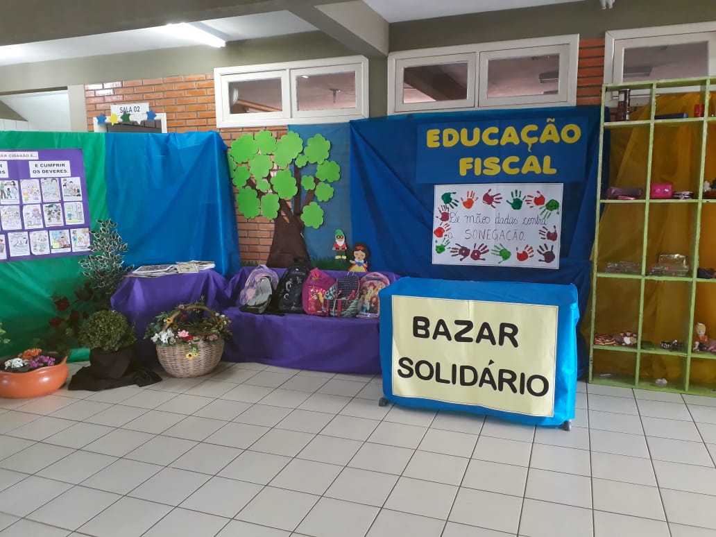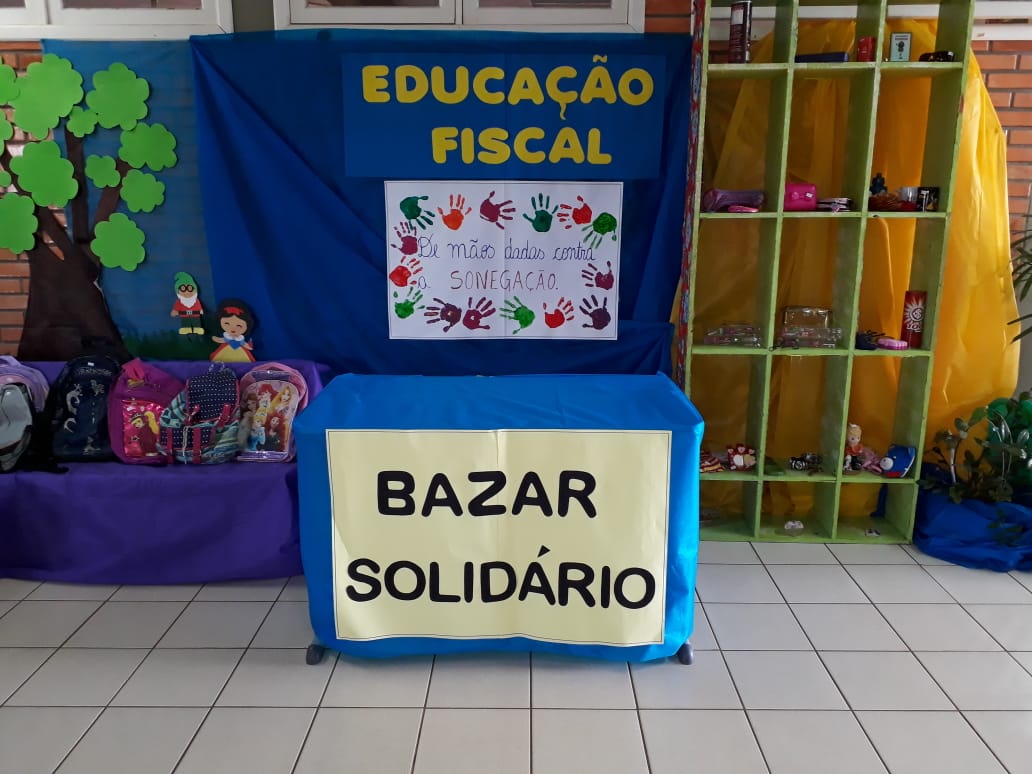 Após o teatro os alunos realizaram um Bazar Solidário, onde colocaram em prática os ensinamentos recebidos sobre educação fiscal, realizando a compra e venda de produtos, com entrega de nota fiscal, reforçando a importância de, enquanto cidadãos, contribuírem para a vinda de recursos para o Município através da arrecadação de impostos.
