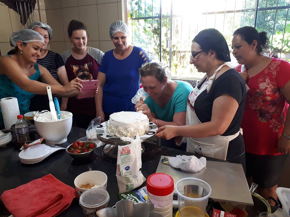 Buscando novidades e aperfeiçoamentos nas técnicas e práticas de bolos e tortas, a Secretaria Municipal de Assistência Social realizou oficinas tortas no dia 22 de outubro do corrente ano, com aproximadamente 15 mulheres da comunidade Linha Sete de Setembro, durante o dia todo, totalizando 8 horas.O curso tem por objetivo de apresentar as mais variadas técnicas, para confeccionar tortas, desde a confecção do Bolo, o recheio até a decoração, dicas de onde adquirir o material utilizado e até de como lucrar.