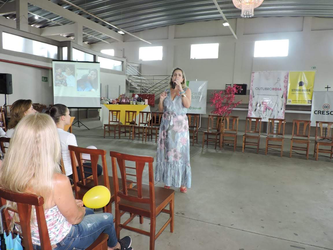 Na tarde do dia 29 de outubro, no Salão Paroquial, cerca de 400 pessoas, em sua maioria absoluta mulheres do Município, estiveram reunidos para encerrar o projeto Papo de Mulher nas Comunidades. Oportunamente, a Senhora Valicir Melchiors Trebien, psicóloga, professora universitária, Coach Empresarial do Município de Itapiranga SC proferiu palestra intitulada: Prevenção, auto estima, auto amor e sexualidade. A tarde foi de momentos de sensibilização, gincanas alusivas ao tema, com muitos brindes e sorteios as participantes. O evento contou com as parcerias das cooperativas: CRESOL, SICREDI e EMATER.Desenvolvido pela Secretaria Municipal de Saúde, através das equipes vinculadas a Atenção Básica (ESF e NAAB). Nos dois meses que antecederam o encerramento do projeto Papo de Mulher, foram realizados grupos nas comunidades do interior do município para uma roda de conversas sobre prevenção, autoestima e sexualidade. O projeto teve como principal objetivo instruir as mulheres a estar conectada ao autocuidado físico, mental e sexual, com foco nas temáticas dos meses alusivos ao setembro amarelo, mês que trata da prevenção ao suicídio e outubro rosa, mês voltado para a prevenção do câncer de mama e de colo de útero,