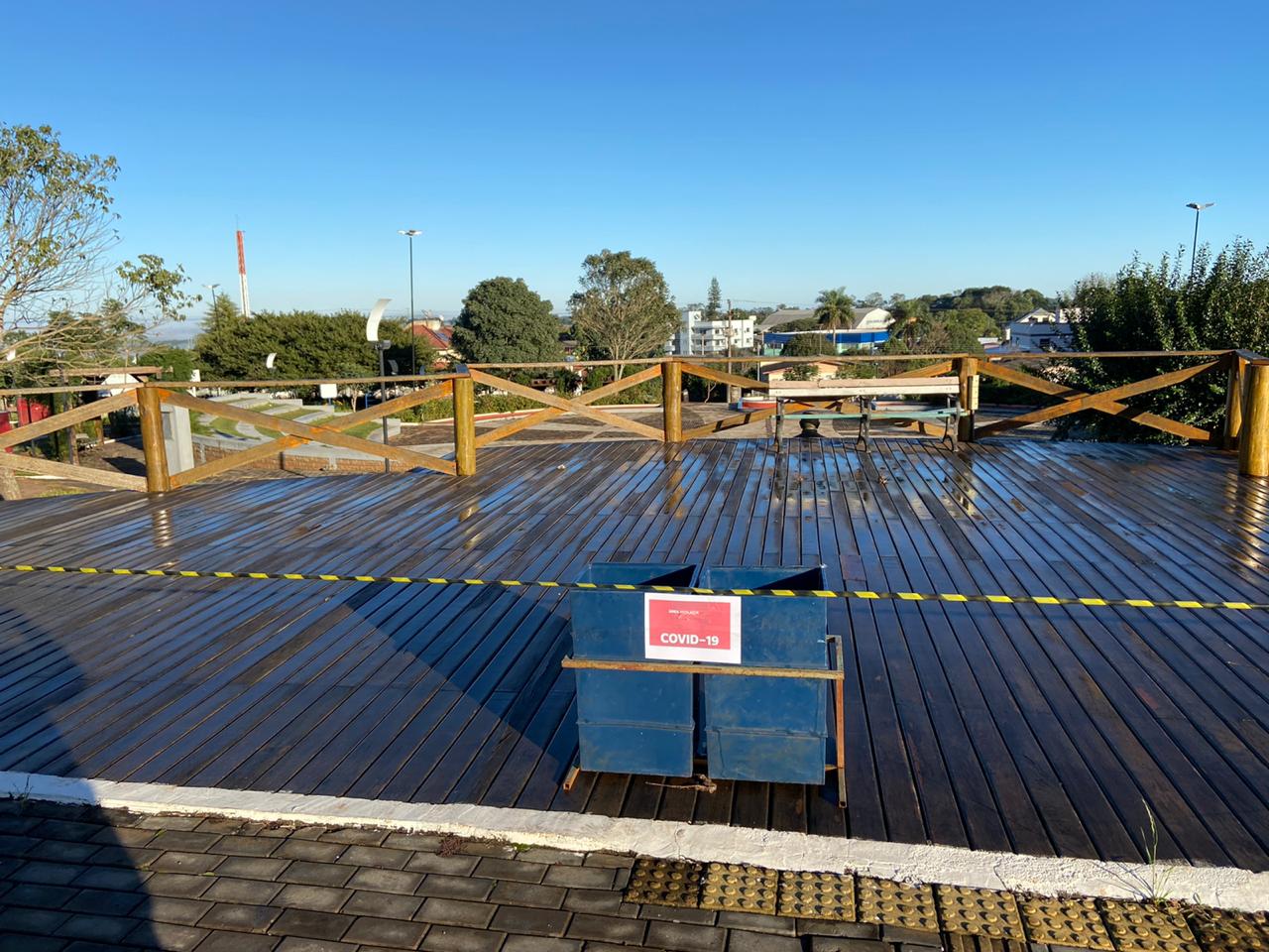 Atendendo Recomendação do Ministério Público Estadual de Frederico Westphalen, na semana passada, foram isoladas áreas públicas. Foram isolados o entorno da Praça da Matriz e ao lado do prédio da Prefeitura. Lembrando que está proibida qualquer atividade como festas nas sedes das comunidades do interior, eventos esportivos, entre outros, sob pena de multa ou interdição do local.