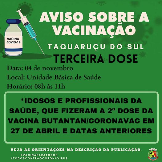 VACINAÇÃO 3ª DOSE IDOSOS E PROFISSIONAIS DA SAÚDE