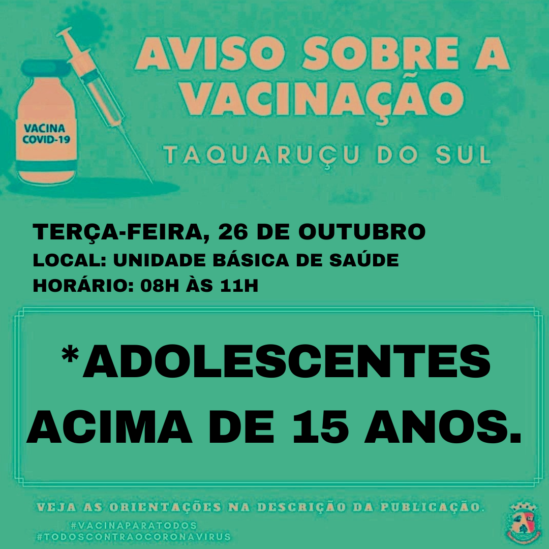 VACINAÇÃO ADOLESCENTES ACIMA 15 ANOS DE IDADE