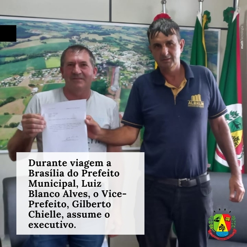 Na sua ausência, o vice-prefeito Gilberto Carlos Chielle ficará à frente do Poder Executivo.