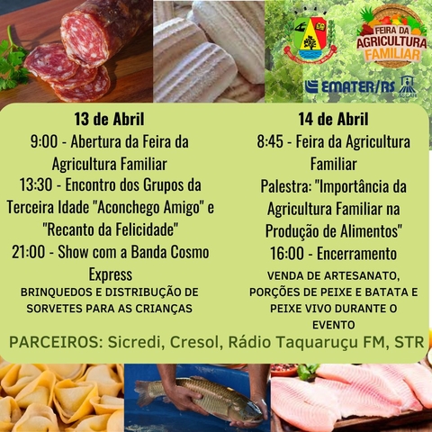 Nos dias 13 e 14 de abril em nosso munícipio irá ocorrer a Feira da Agricultura familiar!