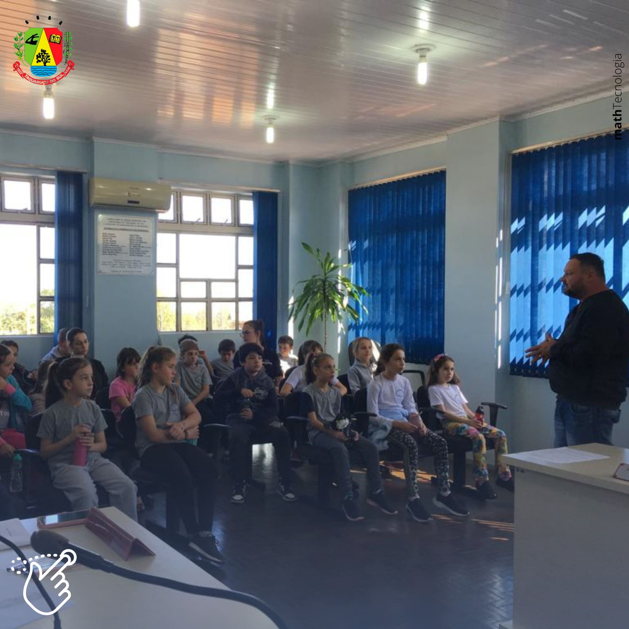 Na tarde do dia 06 de maio, os alunos do 4º ano da Escola Municipal Afonso Balestrin, juntamente com a monitora e professora Susana Schwartz Basso, visitaram a sede da Câmara de Vereadores do município, a fim de aprofundar o estudo sobre os poderes municipais.