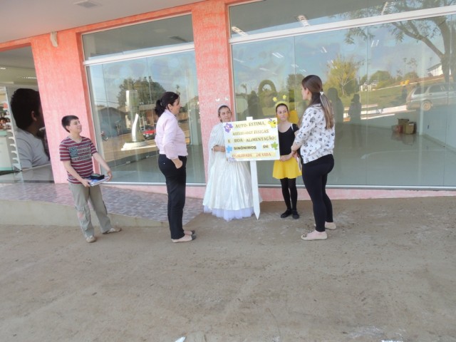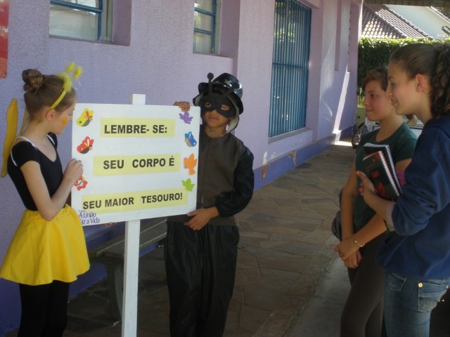 Com o objetivo de divulgar algumas dicas de saúde para as pessoas da comunidade e, principalmente trabalhar a desinibição e a oralidade dos alunos, foi desenvolvida a atividade - estátuas vivas onde os alunos, em alguns pontos estratégicos do município, seguraram algumas placas e explicaram sobre a importância de ter um corpo saudável.