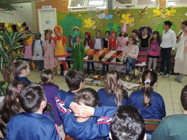Apresentação de peças teatrais sobre a cooperação e o folclore brasileiro aos pais e reunião com entrega de boletins.