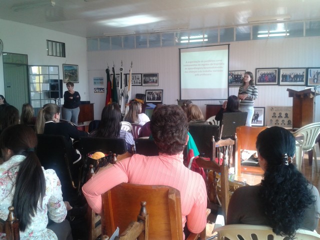 O encontro foi coordenado pelas professoras Alvine Gens Gaulke e Valéria Bruch com o tema “A Avaliação na Educação Infantil”.