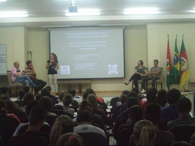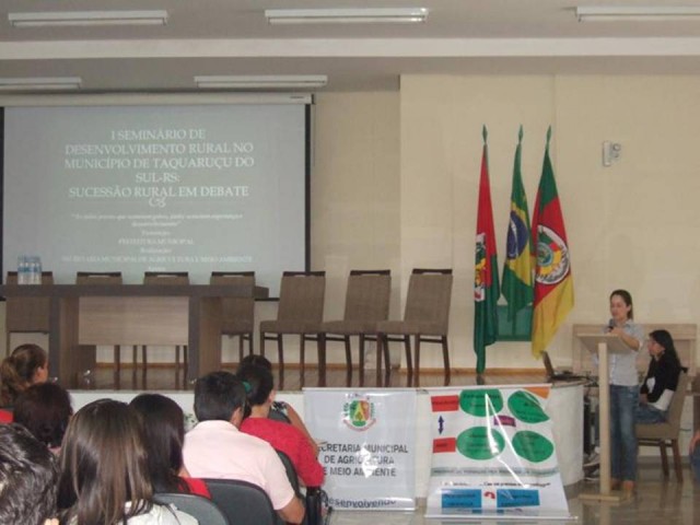 Aconteceu no dia 23 de outubro de 2013, no Auditório do Centro Municipal de Agricultura e Meio Ambiente em Taquaruçu do Sul-RS o I Seminário de Desenvolvimento Rural no Município de Taquaruçu do Sul-RS: Sucessão Rural em Debate, que teve como Lema: As mãos jovens que semeiam grãos, junto semeiam esperança e desenvolvimento. O objetivo do evento foi refletir a temática do desenvolvimento da agricultura familiar tendo como foco a sucessão da propriedade rural familiar, considerando a contribuição da elaboração de Projetos Profissionais de Vida do Jovem como proposta de desenvolvimento das famílias rurais.