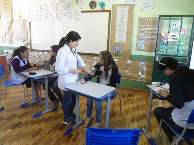 Na visita, foi verificada a pressão arterial de todos os alunos e professores, e dado orientações sobre como prevenir doenças.