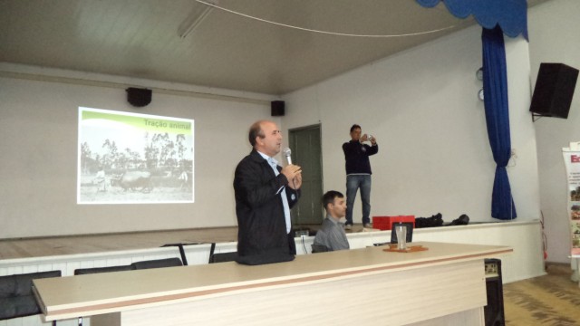 Ao final do evento, a presença importante do jovem agricultor, egresso da CFR de FW, Mateus Vizzotto, fez a apresentação de seu Projeto Profissional de Vida enfocando alguns aspectos relevantes na propriedade rural: a família, o trabalho e o espírito empreendedor. Fatores estes cruciais para a permanência do jovem no campo e a importância do papel da escola nesse processo.