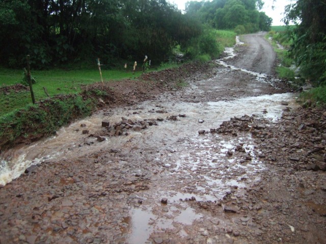 Na manhã desta sexta-feira 07 de novembro de 2014 a equipe da Secretaria de Obras do município deslocou-se ao interior para averiguar os estragos causados pela chuva. Até o momento foram registrados 116 milímetros de chuva, ocasionando danos em algumas estradas vicinais do município, acarretando em prejuízos e dificuldades de deslocamento.