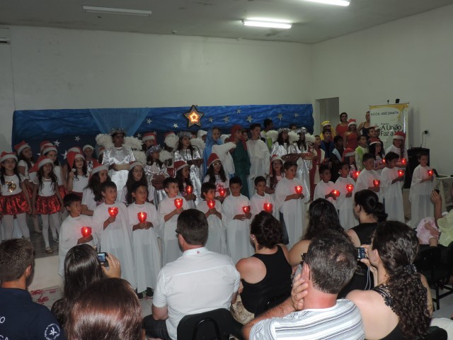 Na noite do dia 12/12/14, apresentação da peça teatral “Uma História de Amor”, como culminância do projeto “Pertinho de Deus” do programa “A União Faz a Vida”. Esta ação envolveu todos os alunos e professores do turno vespertino (1º ao 5º anos). Todos demonstraram empenho e dedicação: os alunos foram autênticos atores e os professores, por trás dos bastidores, tão bem orientaram e conduziram a belíssima apresentação que sensibilizou muitos dos presentes. Conforme o depoimento de pais, a peça realmente fez os presentes sentirem-se bem pertinho de Deus.