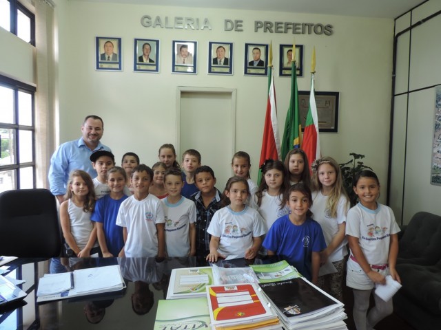 Com o intuito de aprofundar o estudo sobre Educação Fiscal na escola e o uso consciente da Água, a turma do 3º ano, da Escola Estadual de Educação Básica José Zanatta, acompanhada pela professora responsável Adriana S. Zanchet, entrevistou o senhor prefeito municipal, Vanderlei Zanatta.