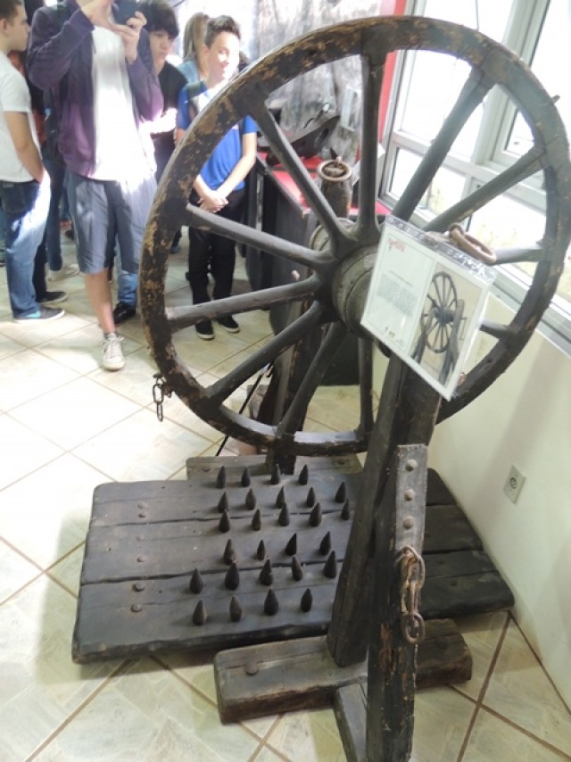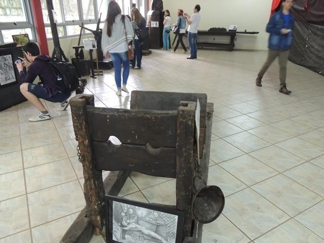Os alunos do 8º e 9º anos da Escola Municipal Afonso Balestrin de Taquaruçu do Sul visitaram na terça-feira, 11 de agosto, em Palmeira das Missões a Mostra Internacional de Objetos Medievais de Tortura usados em diferentes períodos da história no Centro Cultural Mozart Pereira Soares. O objetivo da mostra era levar ao conhecimento dos alunos a brutalidade que desde sempre motivou o homem a subjugar a sua própria espécie, com objetos originais do período medieval europeu. Foi uma excelente oportunidade de visualizar o que foi estudado e discutido em sala de aula na disciplina de História. A exposição desejava levar as pessoas, principalmente o público estudantil, o contato com objetos originais do período medieval europeu, alertando os jovens e a sociedade em geral para que histórias e práticas de tortura não voltem mais a ocorrer. Também foi abordado, em sala de aula, as formas de violência presentes na atualidade em nossa sociedade.
