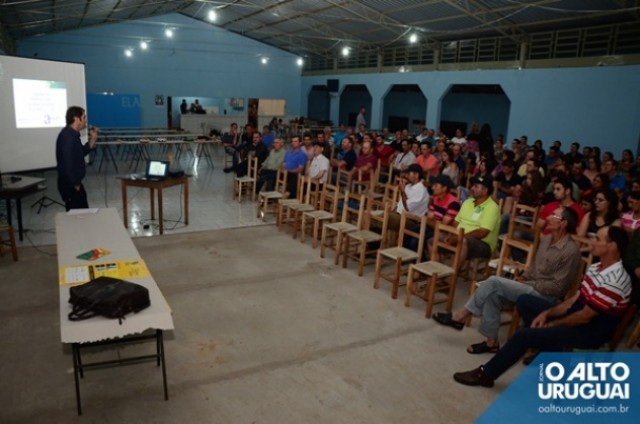 Cerca de 100 suinocultores participaram na linha Volpatto, no interior de Taquaruçu do Sul, de uma reunião com a participação do presidente da Associação de Criadores de Suínos do Rio Grande do Sul (Acsurs), Valdecir Folador.