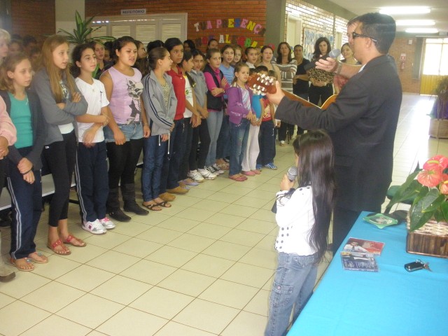 No dia 09 de abril foi realizada uma ação do projeto “Sou adolescente, e daí?” do turno da manhã onde o Senhor Adílio de Oliveira, deficiente visual, relatou aos alunos sua história de vida, que é um exemplo de superação, e enfatizou a importância de Deus na vida de cada pessoa e dos talentos que todos temos, além de cantar várias músicas de sua composição.