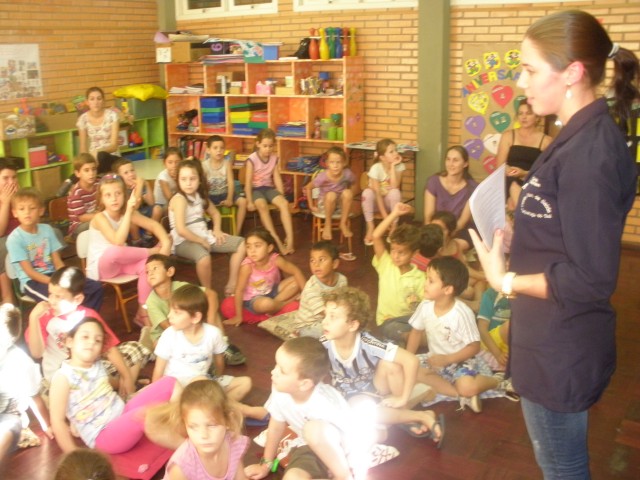 No dia 10 de abril a enfermeira Carla Basso trabalhou, de maneira lúdica, com os alunos da Pré-Escola e primeiros anos sobre hábitos de higiene, destacando a importância de manter o corpo limpo para ser saudável, sendo esta uma ação do projeto “Meu corpo, meu tesouro” do turno da tarde.