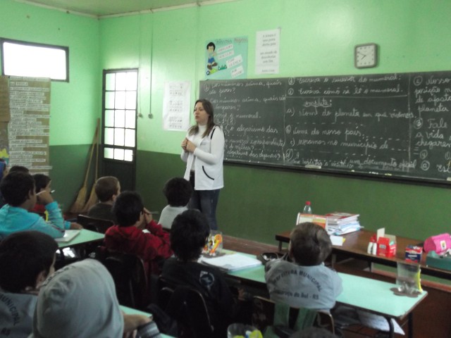Dando início aos trabalhos a nutricionista do município Fernanda Ruani conversou com os alunos do 3º, 4º e 6º ano sobre os cuidados e a higiene que devemos ter ao manusear e produzir alimentos.