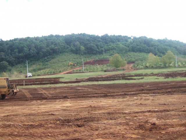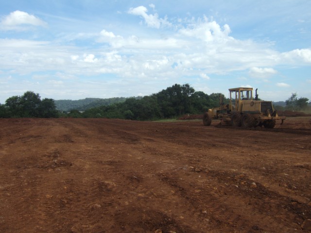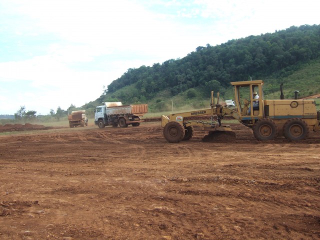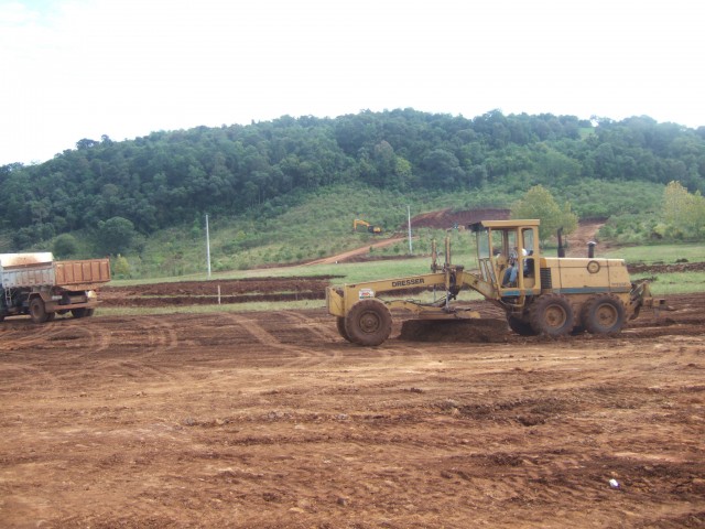 Máquinas e caminhões já trabalham há mais duas semanas no local, sendo que duas, das nove terraplanagens que deverão ser feitas já foram concluídas, e a previsão é de que a conclusão ocorra em três meses.